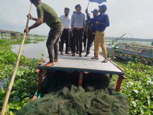 অবৈধ চায়না জাল ধ্বংস করেছে ভ্রাম্যমাণ আদালত। সোমবার(৬অক্টোবর) উপজেলা নির্বাহী কর্মকর্তা (ইউএনও) ও নির্বাহী ম্যাজিস্ট্রেট আবদুল্লাহ আল রনী এ আদালত পরিচালনা করেন। এ সময় অন্যানের মধ্যে উপস্থিত ছিলেন উপজেলা মৎস্য কর্মকর্তা ৭ নং দারিয়াপুর ইউপি প্রশাসক মো. বদিউজ্জামান,বহেড়াতৈল ইউপি প্রশাসক,পিআইও ওয়াসিম, ইউপি সদস্যগন ও গণ্যমান্য ব্যক্তিবর্গ। ৫৬ টি চায়না জাল ৮৪০মিটার ১২০ টি কারেন্ট জাল ১হাজার ৮ শত মিটার পুড়িয়ে ধ্বংস করা হয়।
