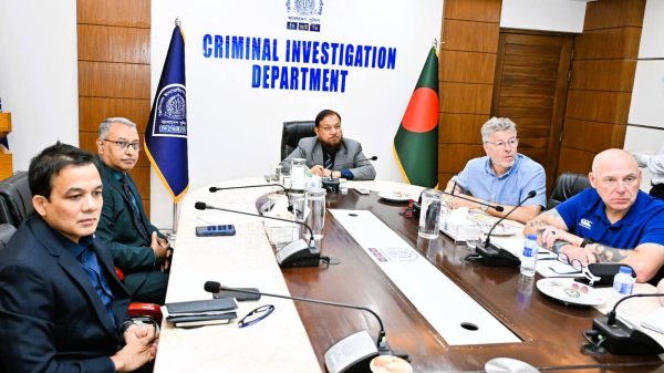 সিআইডি প্রধানের সাথে বিএফআইইউ ও যুক্তরাজ্যের ন্যাশনাল ক্রাইম এজেন্সি প্রতিনিধি দলের সৌজন্য সাক্ষাৎ
