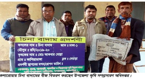 কলারোয়ায় চাষীদের মধ্যে চিনা বাদামের বীজ বিতরণ